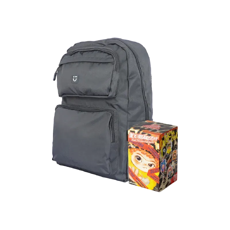 HogarAccesorios Para El HogarMochila escolar gris 28x13x42 cm + Blind box fiesta divertida 19 cm wakuku - Miniso